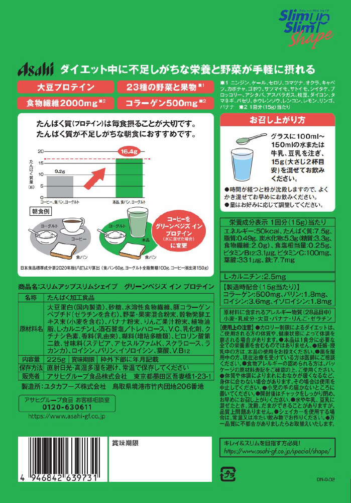 【軽減税商品】スリムアップスリム シェイプグリーンベジズ イン プロテイン 〔グリーンベジズ〕