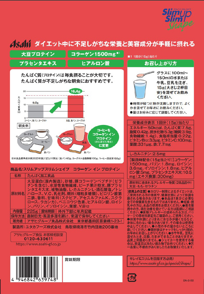 【軽減税商品】スリムアップスリム シェイプコラーゲン イン プロテイン 〔コラーゲン〕