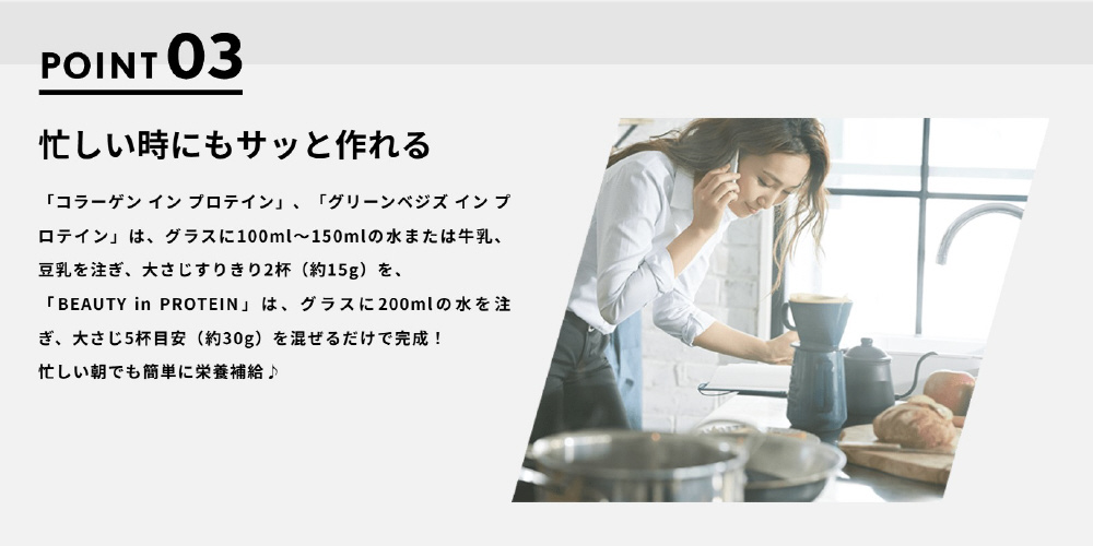 ・特にたんぱく質が不足しがちな朝食の栄養補給にもオススメです。