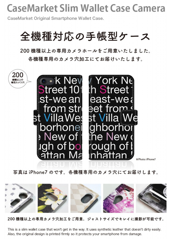 CaseMarket オリジナルのおしゃれなデザインプリントが魅力のオリジナル手帳型ケース。