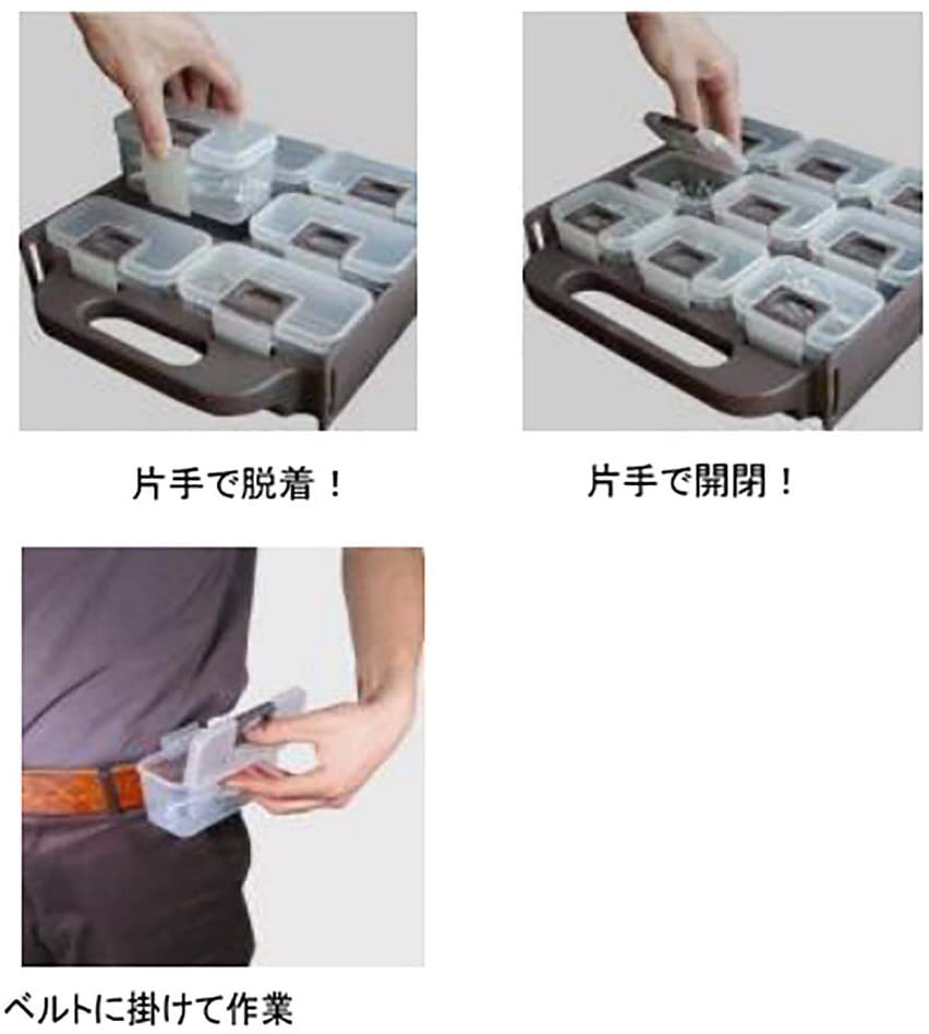 ワンタッチで開閉ができ、腰ベルト掛けもできる部品ケース。