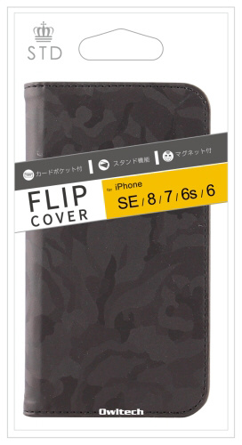 iPhone SE(第2世代)4.7インチ/8/7/6s対応 手帳型ケース 迷彩柄 ブラック