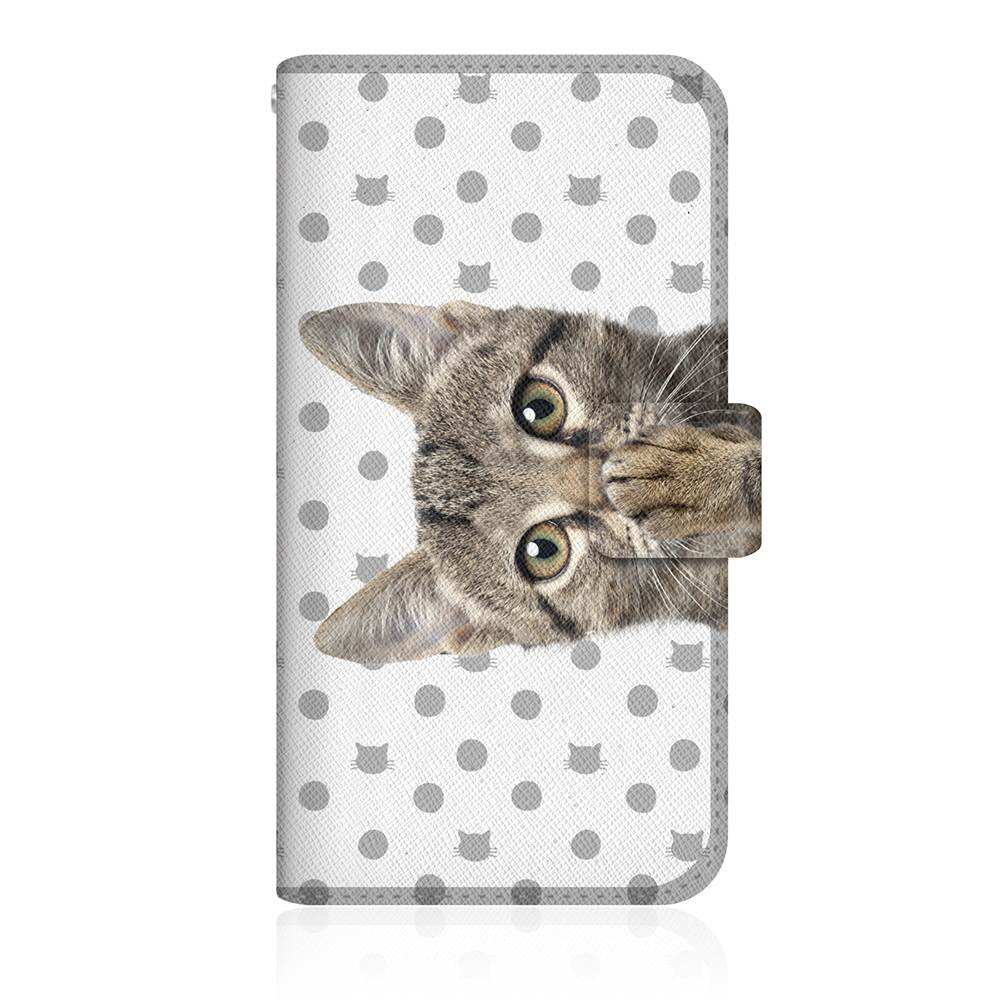 NYAGO POT-LX2J スリム手帳型ケース NYAGO ノート キュート 肉球をペロペロするにゃ〜。 - グレー ドット だにゃ〜。
