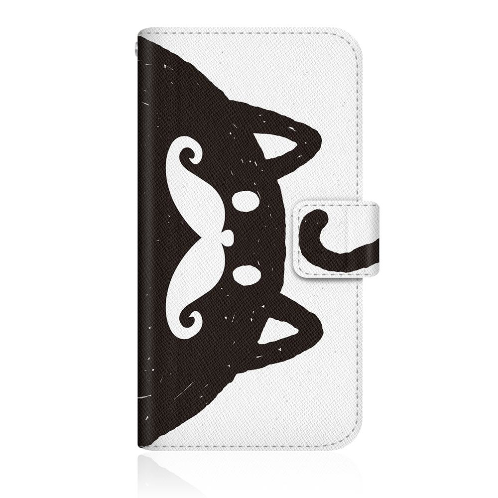 NYAGO POT-LX2J スリム手帳型ケース NYAGO ノート しっぽ モノクロ ビッグ ひげ キャット