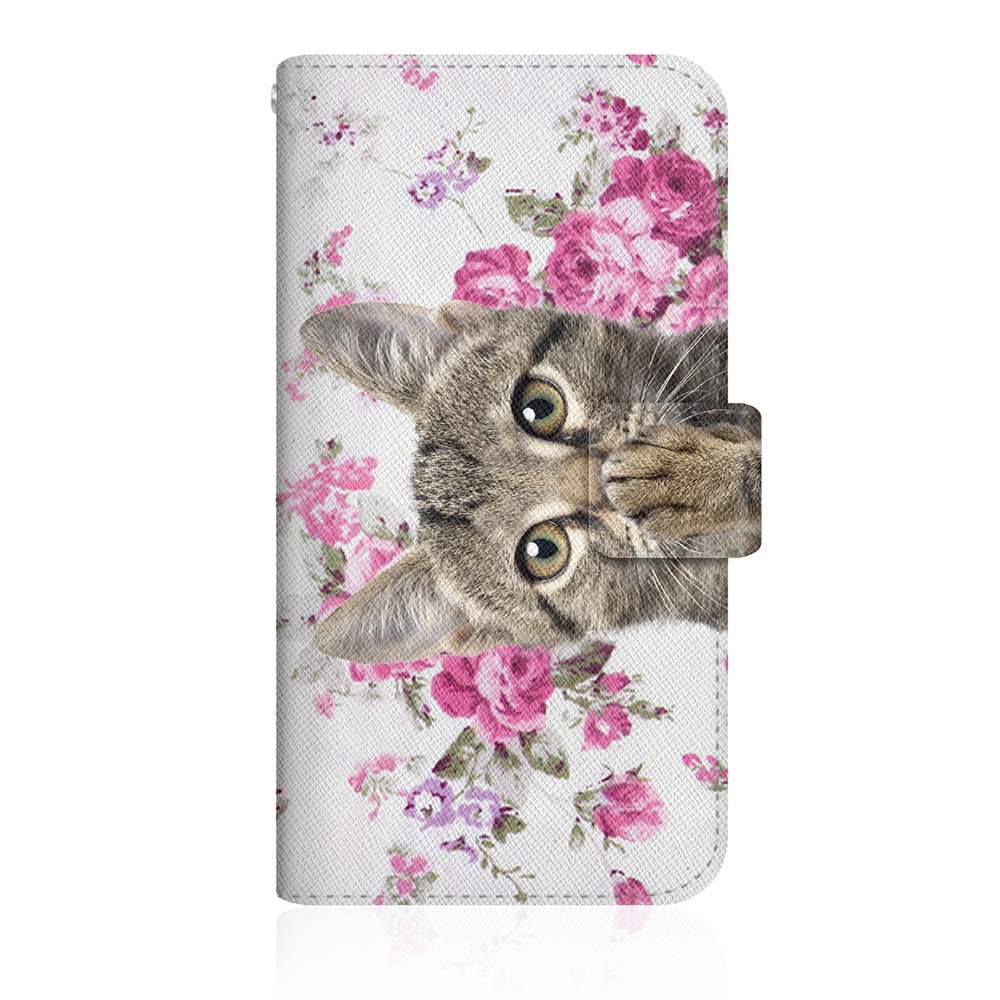 NYAGO POT-LX2J スリム手帳型ケース NYAGO ノート キュート 肉球をペロペロするにゃ〜。 サマー フラワー だにゃ〜。