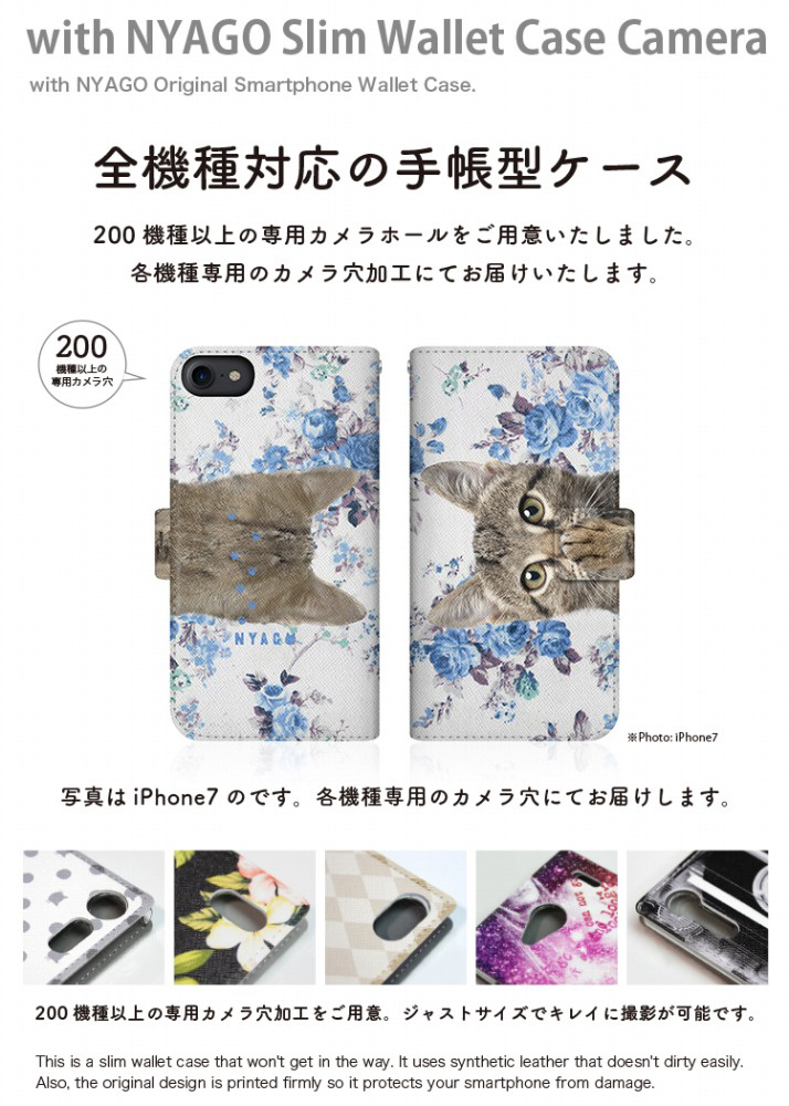 with NYAGOはお洒落でかわいい人気の猫デザインブランド。かさばらないスリム手帳型ケース。