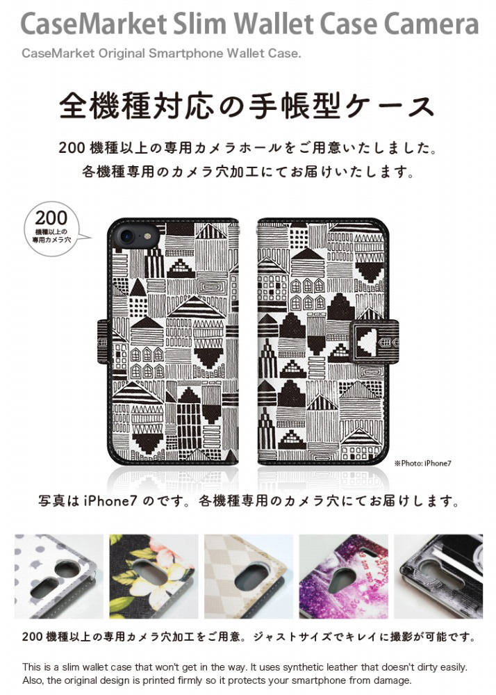 CaseMarket オリジナルのおしゃれなデザインプリントが魅力のオリジナル手帳型ケース。