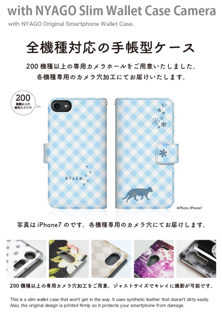 with NYAGOはお洒落でかわいい人気の猫デザインブランド。かさばらないスリム手帳型ケース。