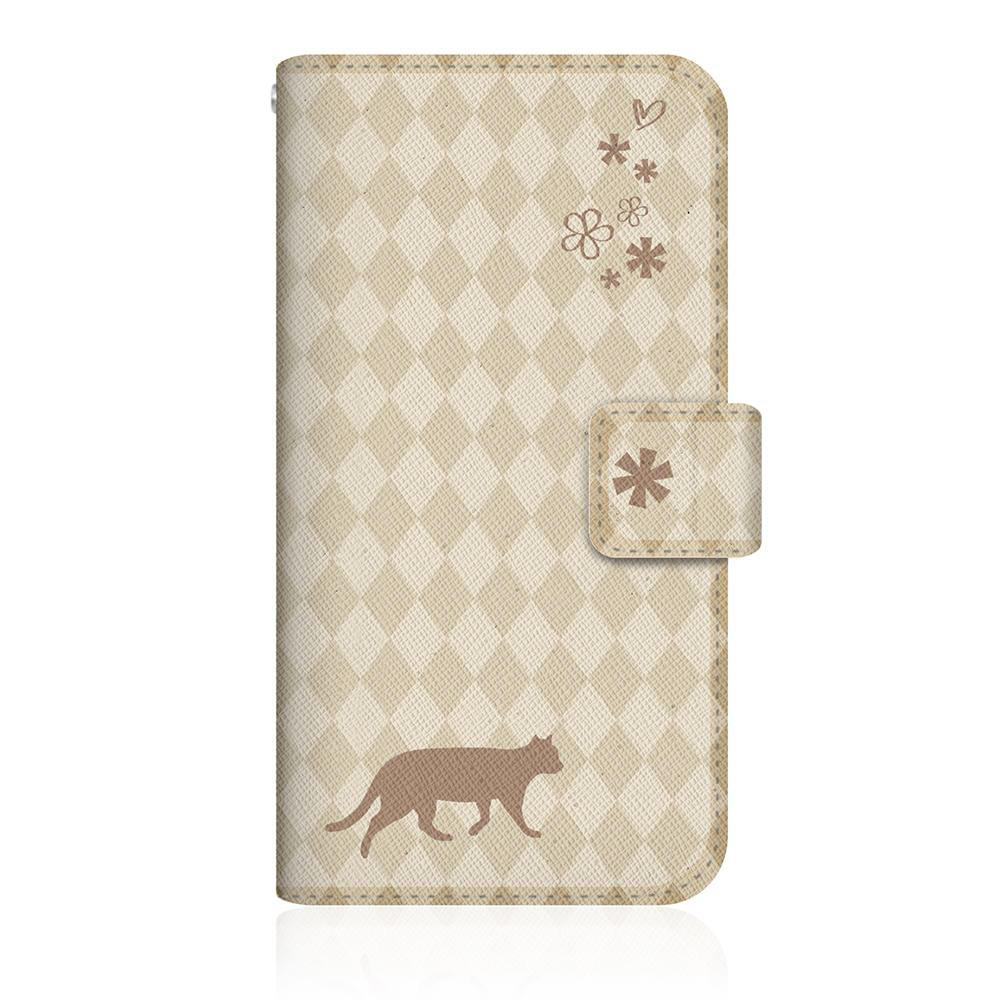 NYAGO SH-M10 スリム手帳型ケース NYAGO ノート フレンチ フラワー ダイアリー キャット シルエット ダイヤ柄 & てくてくお散歩だにゃん クリーム SH-M10-BNG2S2462-78