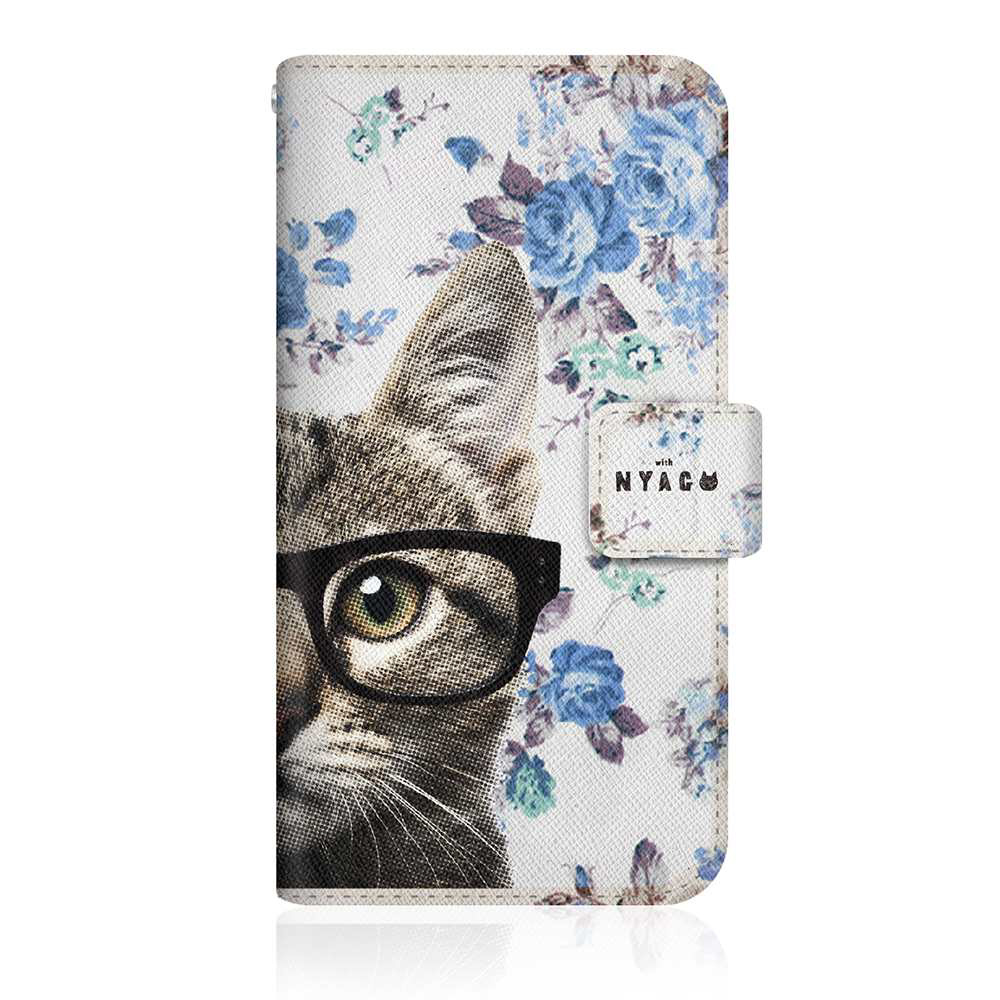 NYAGO SH-M10 スリム手帳型ケース NYAGO ノート キュート メガネ フェイス キャット - サマー フラワー だにゃ〜。 - ブルー SH-M10-BNG2S2726-78