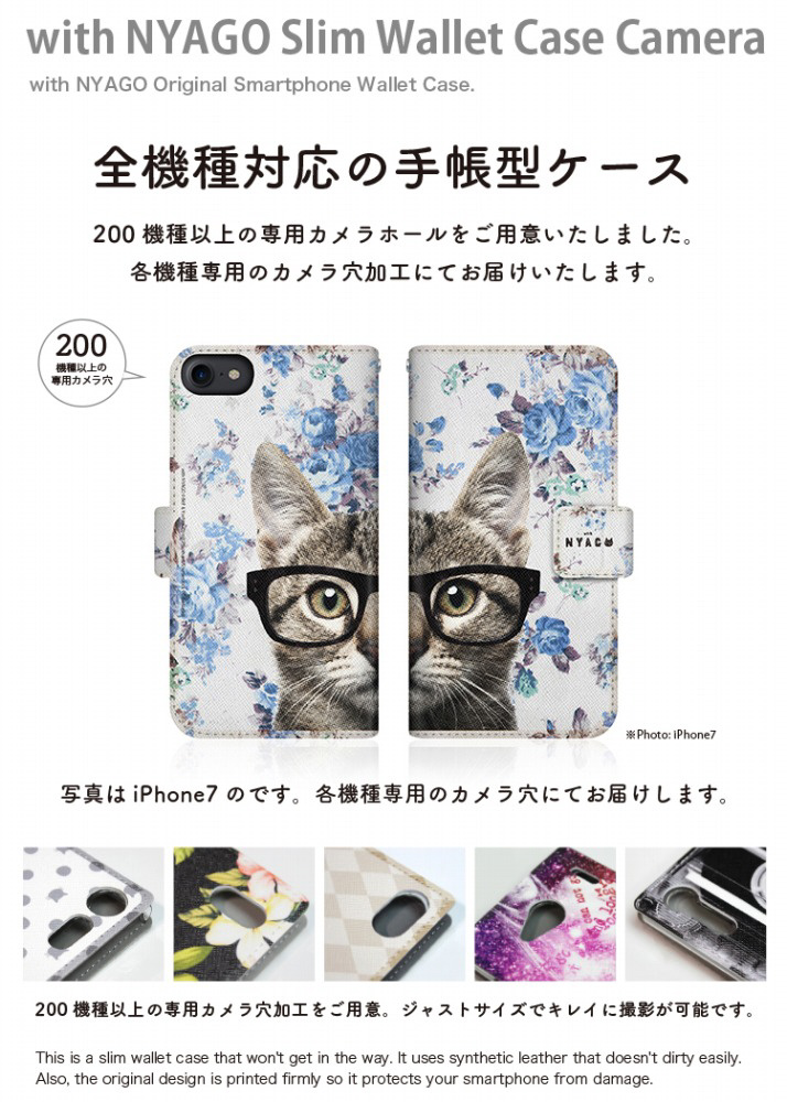 with NYAGOはお洒落でかわいい人気の猫デザインブランド。かさばらないスリム手帳型ケース。