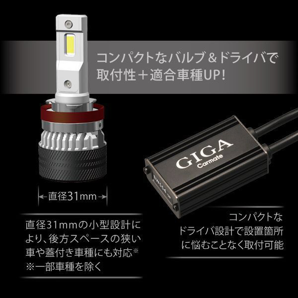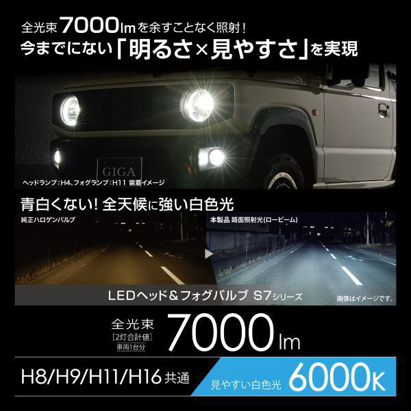 LEDヘッドバルブ GIGA S7 6000K H8/9/11/16 白色光 7000lm BW553