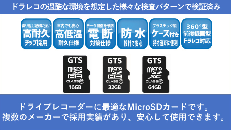 録画エラーや読み込み不可などを防ぐためにも、ドライブレコーダーでの使用に合わせて開発された製品をお勧めします。