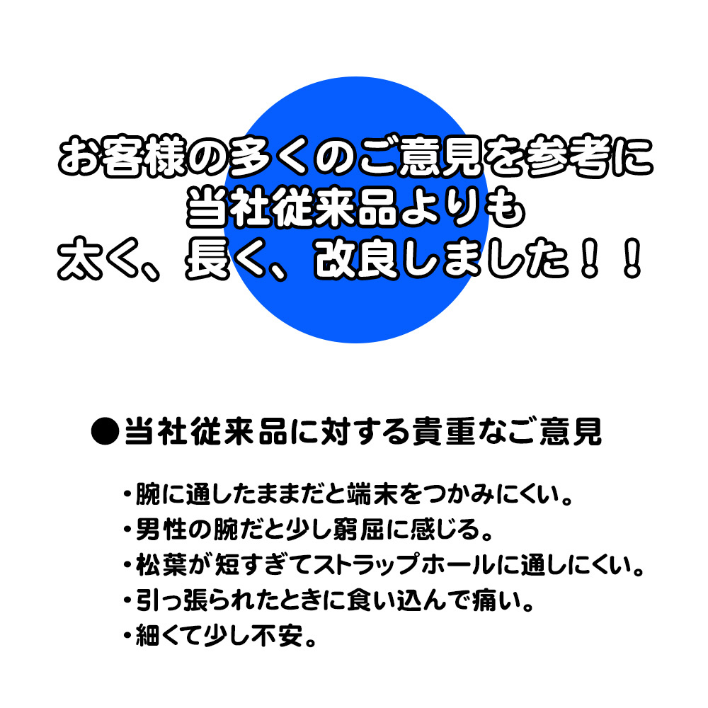 本製品は装着する端末を傷つけにくい金属不使用、丸ひもタイプのハンドストラップです。