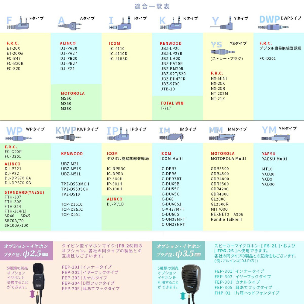 ●FRC:FC-G20R/FC-D301(VOX機能、PTTホールド機能は使用できません)