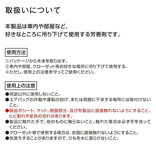 ●クルマでもお部屋でも使えるペーパータイプの吊り下げ芳香剤です。