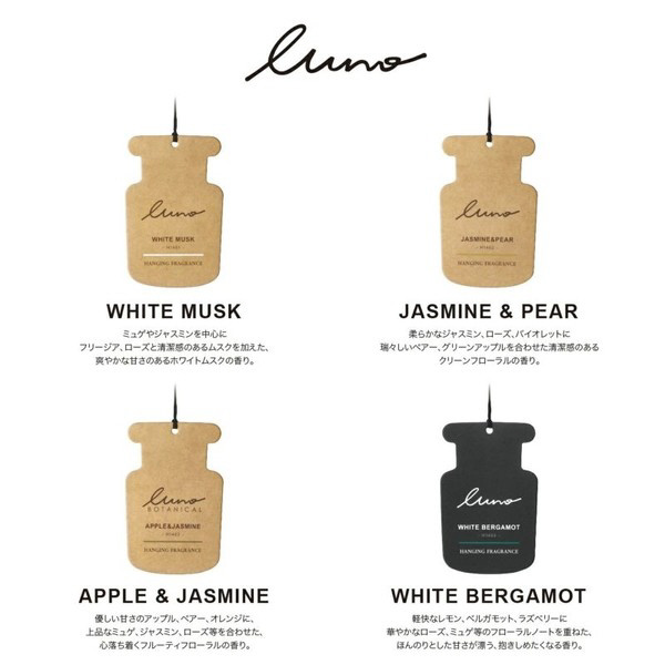 Luno ルーノ 車内 お部屋 空間用 吊り下げ 芳香剤 ハンギングペーパー ホワイトベルガモット H1464