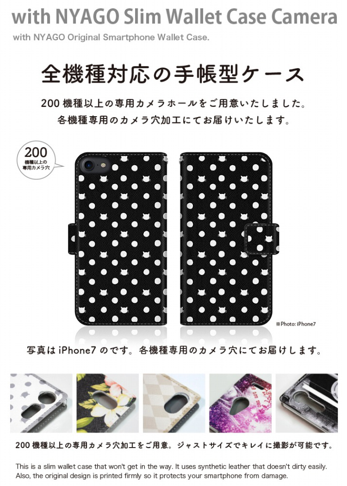 with NYAGOはお洒落でかわいい人気の猫デザインブランド。かさばらないスリム手帳型ケース。