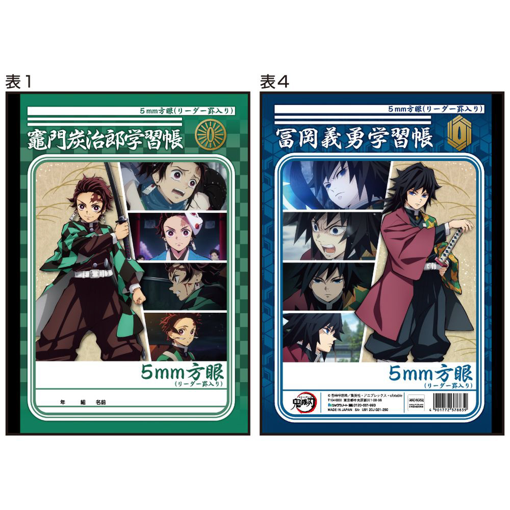 『鬼滅の刃』の主人公・炭治郎と水柱・冨岡義勇のかっこいいシーンが満載の5mm方眼(リーダー罫)学習帳です。