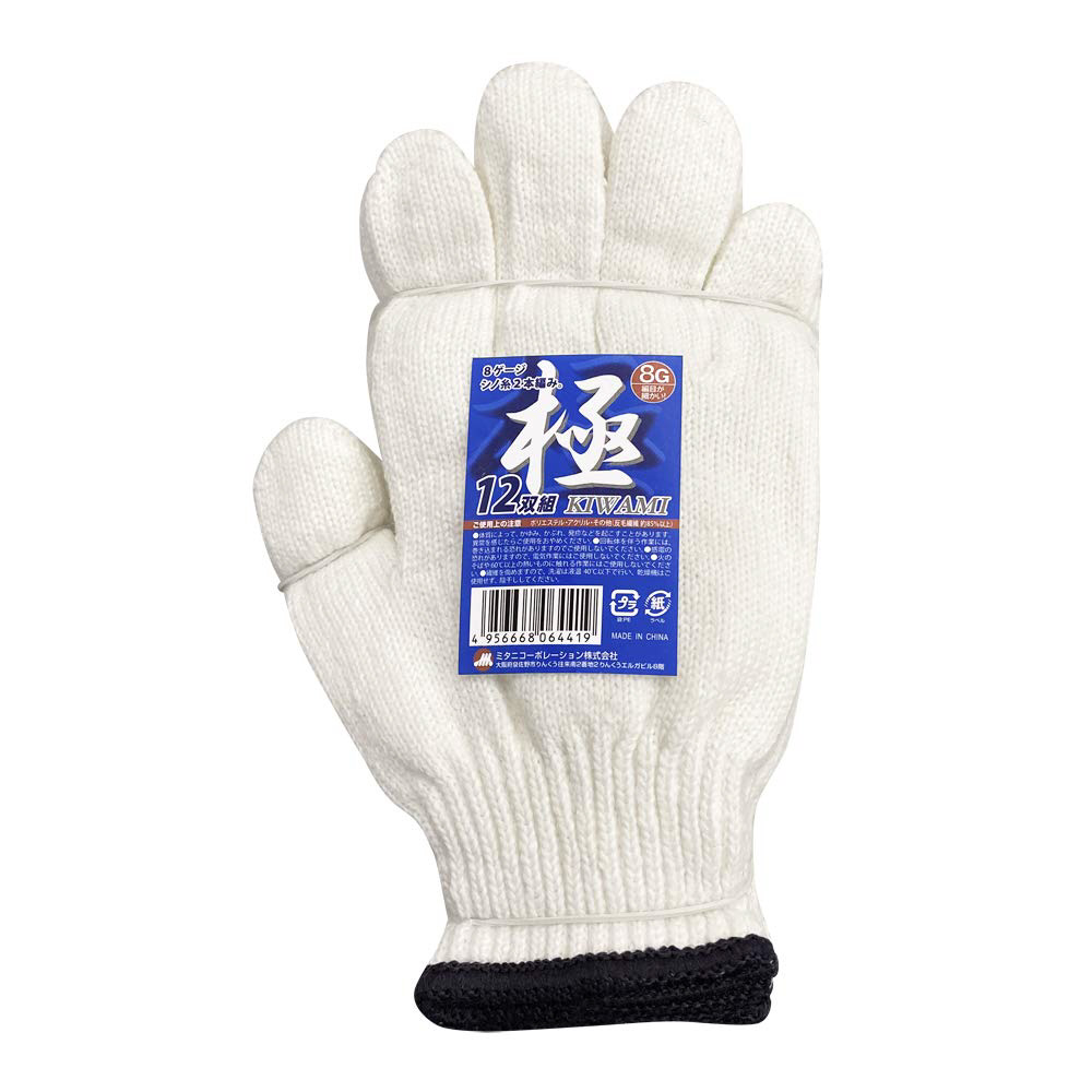 軍手 エコ 「極」 紺 12組 ホワイト 2027392 [フリーサイズ /滑り止めなし]