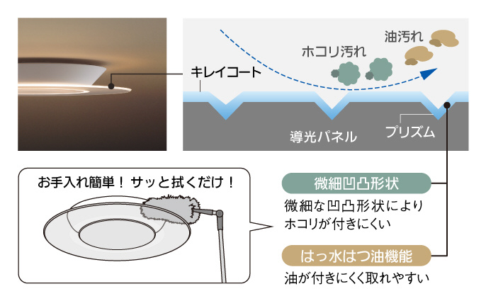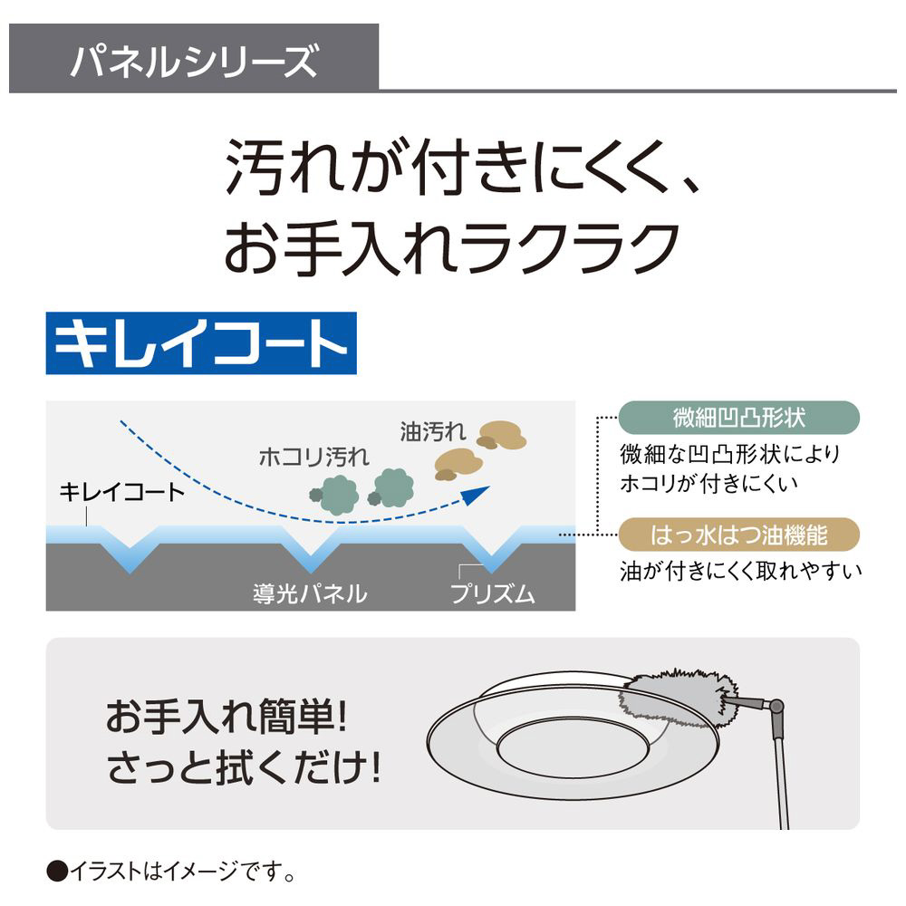 1.ホコリが溜まりにくく、お手入れラクラク キレイコート搭載 2.センター光とパネル光の点灯・消灯の切り替えで、多彩なあかり空間を演出 3.上下左右に光が広がりお部屋の広さ感がアップ 4.消灯時もお部屋に馴染む スタイリッシュなデザイン 5.小さな文字もくっきり読みやすい「文字くっきり光」搭載