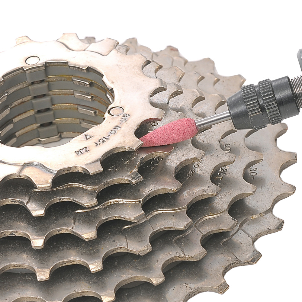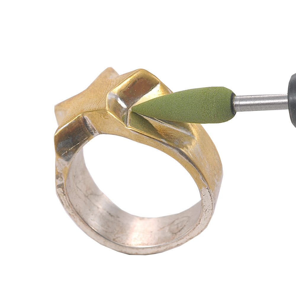 ●材質:WA砥粒を特殊な接着溶剤で固め、ゴムのような弾力を持った軸付きと石。
