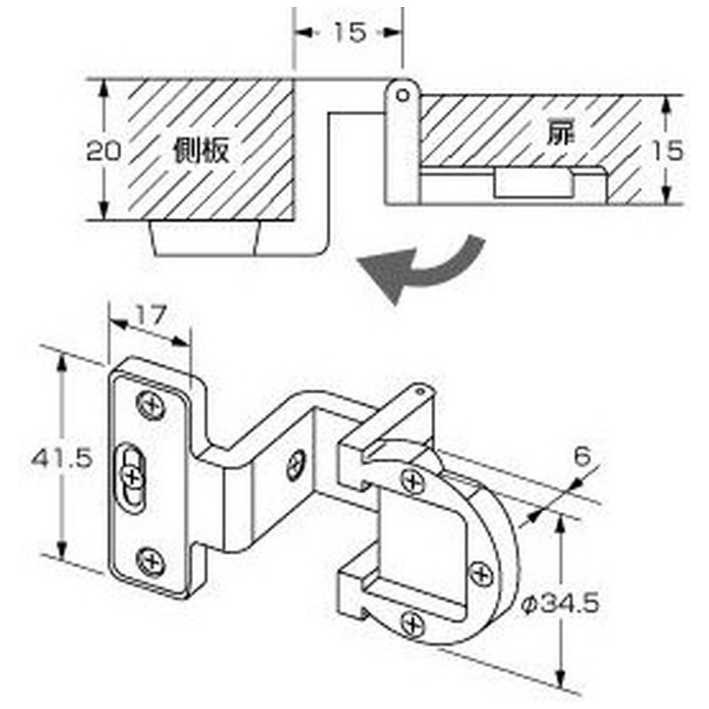家具の開き扉用丁番。