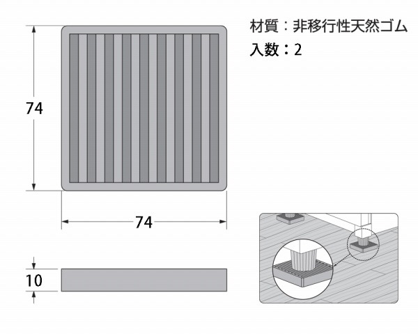A-253 非移行性防振ゴム75角 黒 2個入 00057253-001