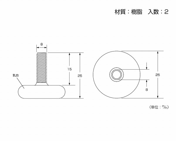 U-796高サ調整ネジ 8x25x15 2個入 00071796-001