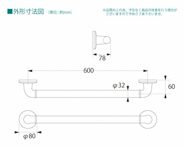 ■特徴: 抗菌樹脂製の手すりで、安心して浴室やトイレなど水周りでご使用いただけます。取り付ける際に、縦や横・斜めなど自由な角度で取り付けられます。