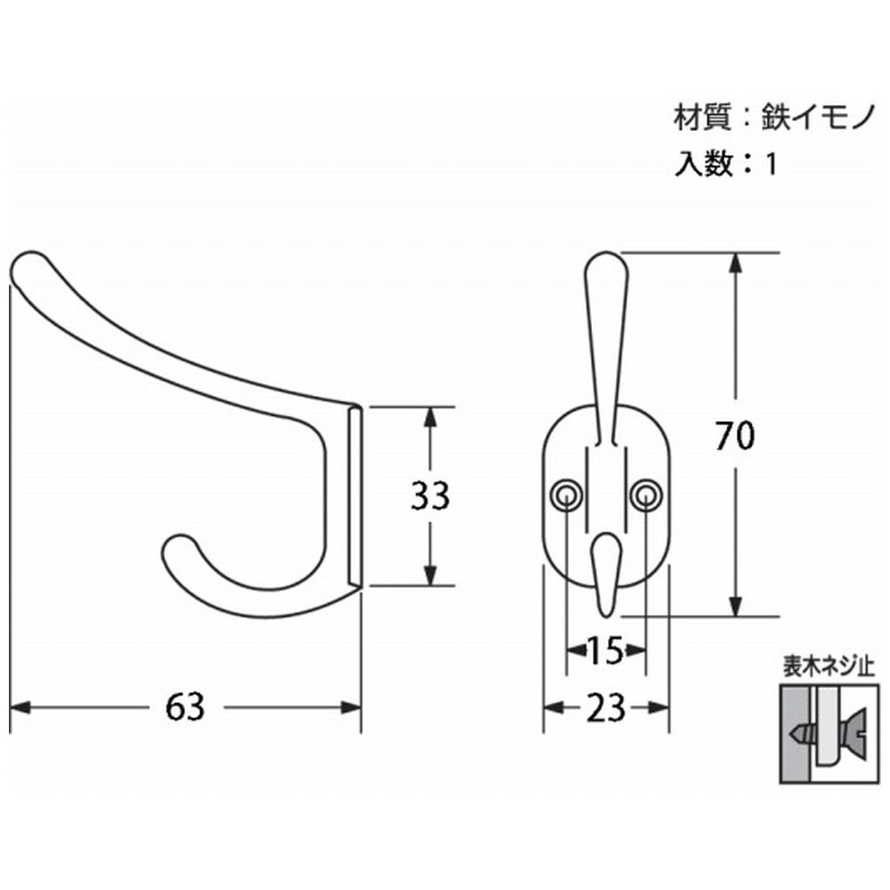 木材壁にがっちり取付けできる、ベーシックな金属フックです。