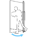 手でハンドルに触れずに、足で扉を開閉できます。
