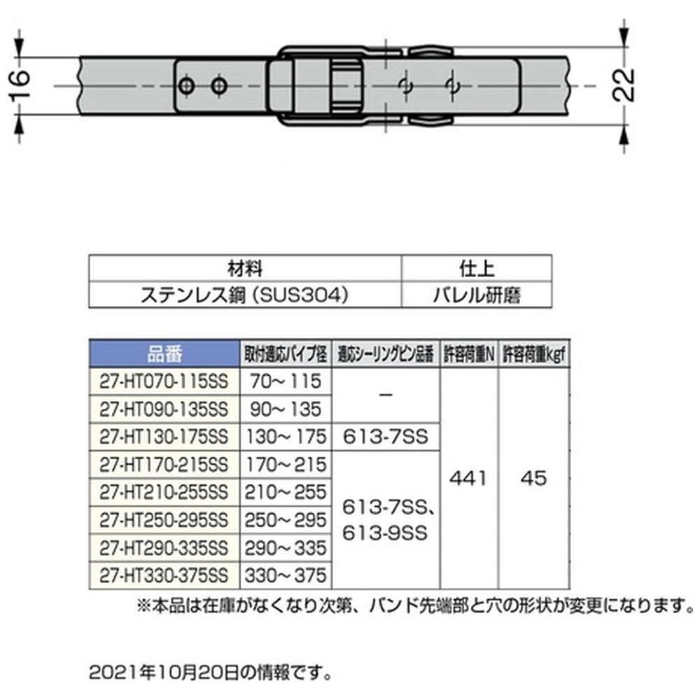スガツネ工業 (120040436)27−HT070−115SSステンレス鋼製強力バンドクランプ 27-HT070-115SS