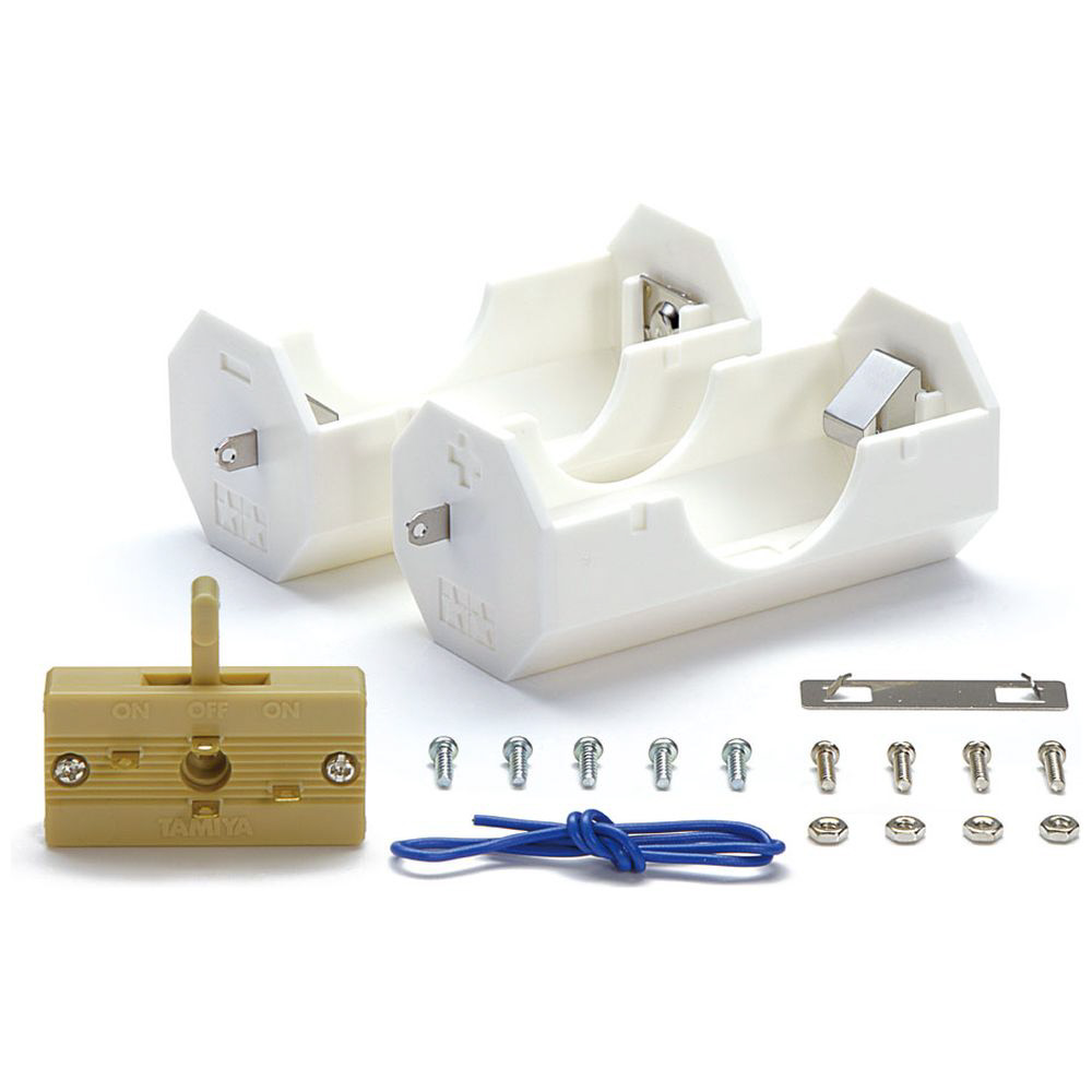 単2形電池1本用の電池ボックスと組み立て式の逆転スイッチのセットです。