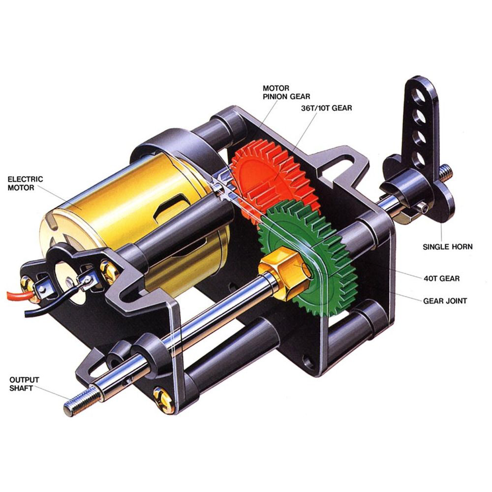 厚手のギヤー、径4mmの金属製シャフト、ABS樹脂製のギヤケースなど、高い耐久性を持っています。