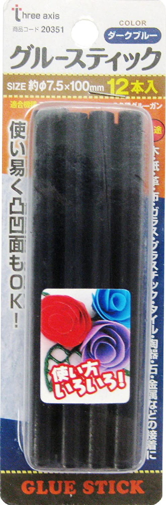 適合可能機種:スティック7.0〜7.5mmの各種グルーガン。家庭用品品質表示法による表示:種類/熱溶融形接着剤 成分/エチレン、酢酸ビニル45.9%、合成樹脂44%、パラフィン10%、顔料0.1% 用途/木、紙、革、布、ガラス、プラスチック、タイル、陶器、石、金属 質量/48g。