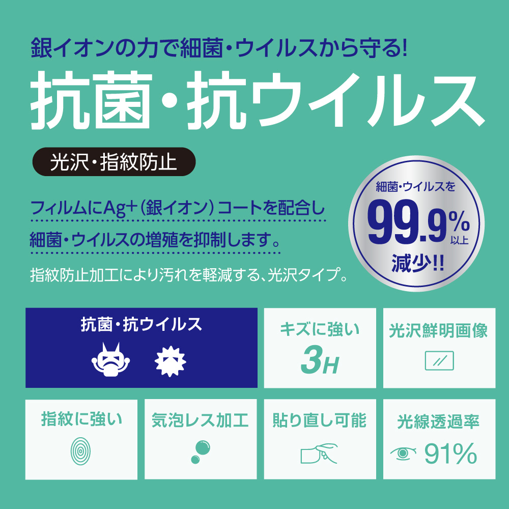 フィルムにAg+(銀イオン)コートを配合し、ウイルス・菌の増殖を抑制します。