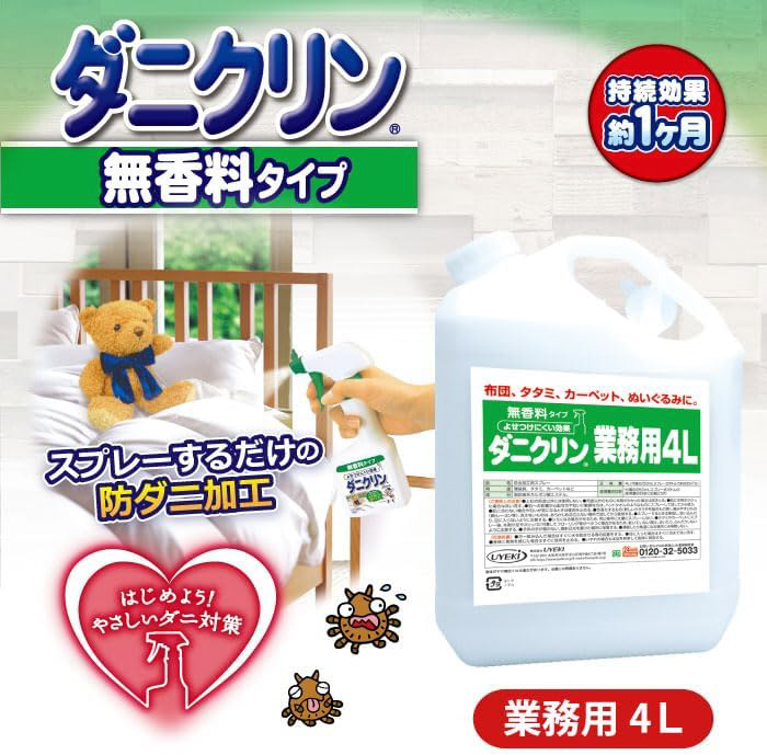 ダニクリンは、殺虫剤のように殺虫成分でダニを直接殺す成分ではありません。ダニをよせつけにくい効果でダニを減らしていく商品です。今お使いの布団やカーペットにスプレー加工するだけの手軽さです。