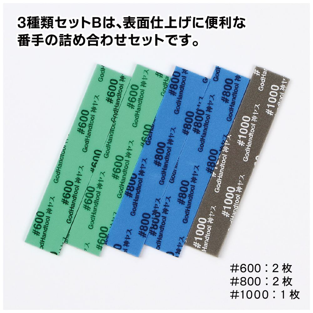 ■「セットB」には、表面仕上げに便利な600番、800番、1000番がセット。