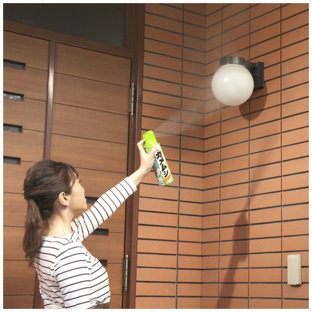 4連ワイド噴射でアミ戸、窓ガラス、玄関灯などに集まったカメムシをまとめて退治します。
