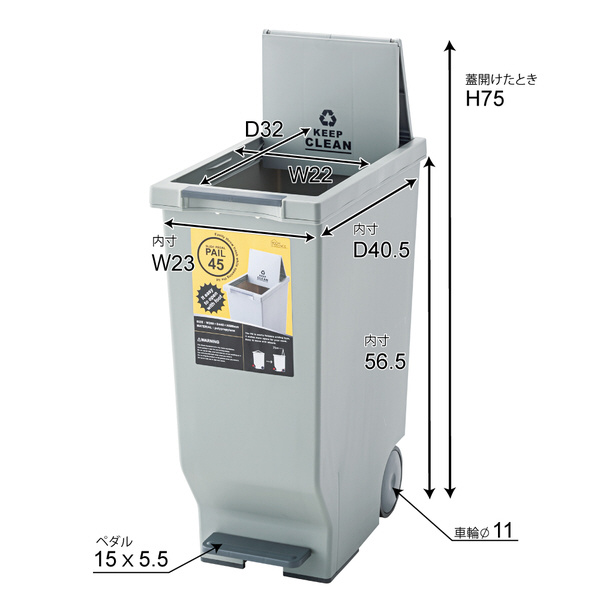 ■フットペダル開閉/商品名の通り『フットペダル』で蓋を開閉させるタイプのトラッシュカンです。フットペダルを踏めば蓋が開き、脚を離せば蓋が閉まる仕様です。蓋が開いた時の最大高は約75cmなので、キッチン周りに置いても邪魔にならずコンパクトにお使いいただけます。