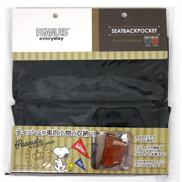 7259-08BK 車内収納 シートバックポケット スヌーピーチア サイズ:235×29cm カラー:ブラック