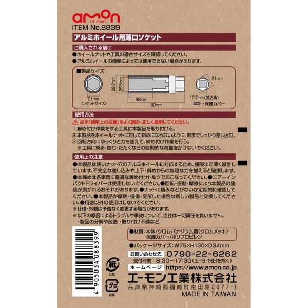 ■製品名:アルミホイール用薄口ソケット 21mm