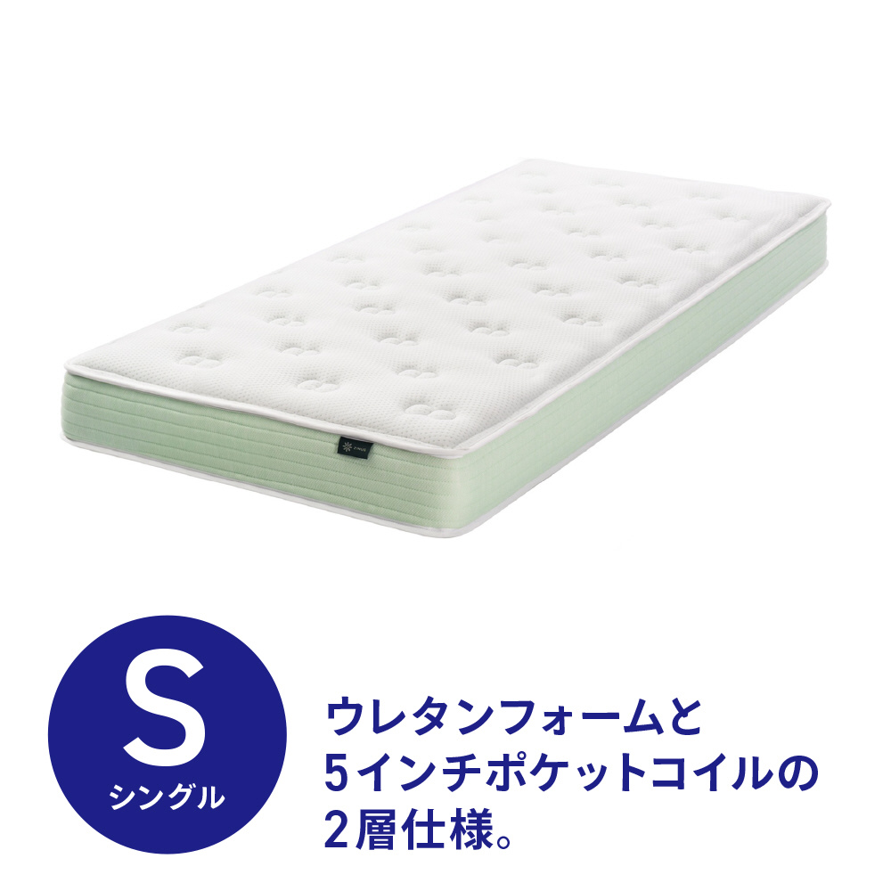 ウレタンフォームと5インチポケットコイルの2層仕様で体をしっかりサポート。