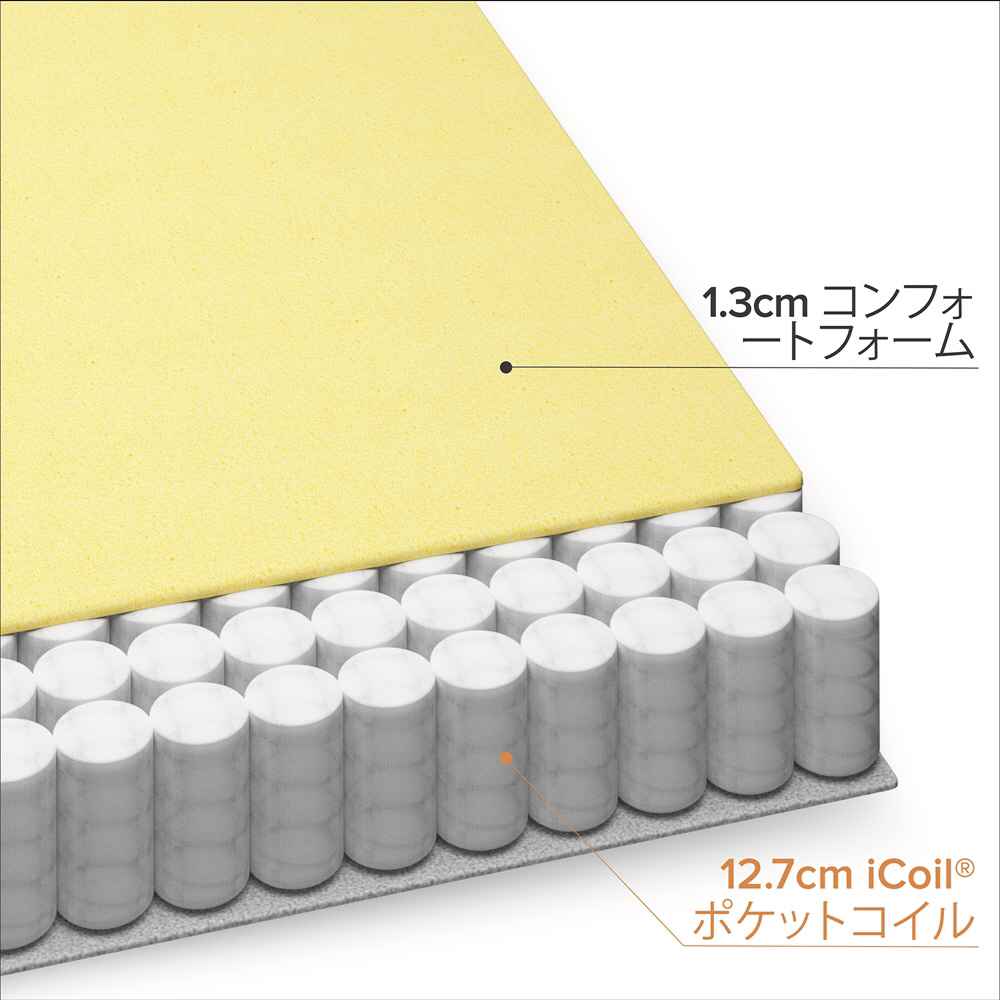1.3cmの高密度フォームと12.7cmのiCoilスプリングの2層構造。
