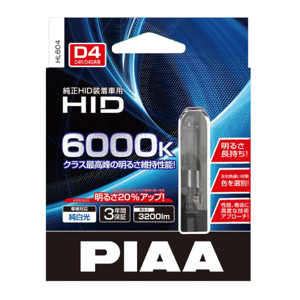 HL604 ヘッドライト用 HIDバルブ(純正交換タイプ) 6000K 12V車用 3000lm D4R/D4S共用 車検対応 2個入
