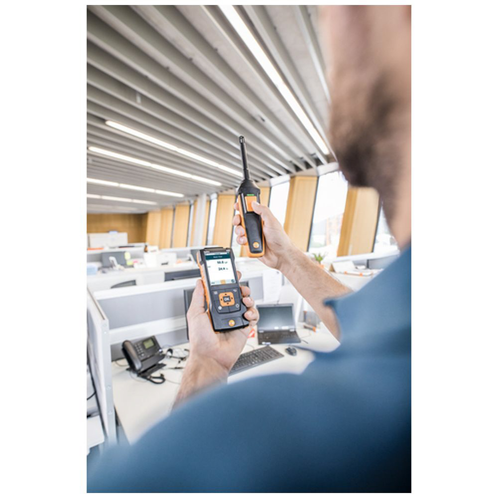 testo440 本体と熱線式風速プローブのセットで、風速、温度を測定し、風量を演算します。