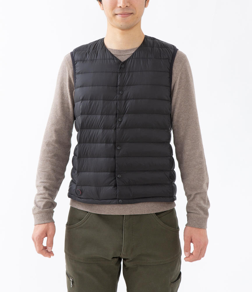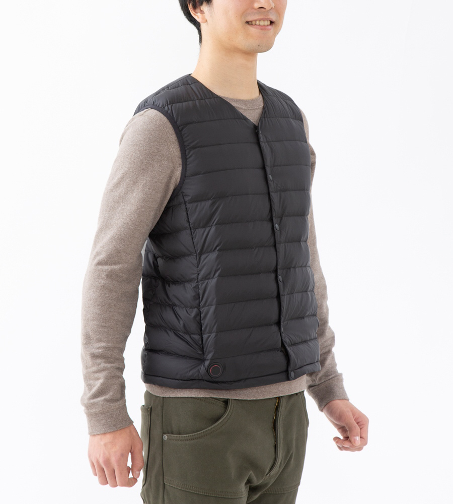 コンセントがない所でもあたたかいヒーター付きベストです。