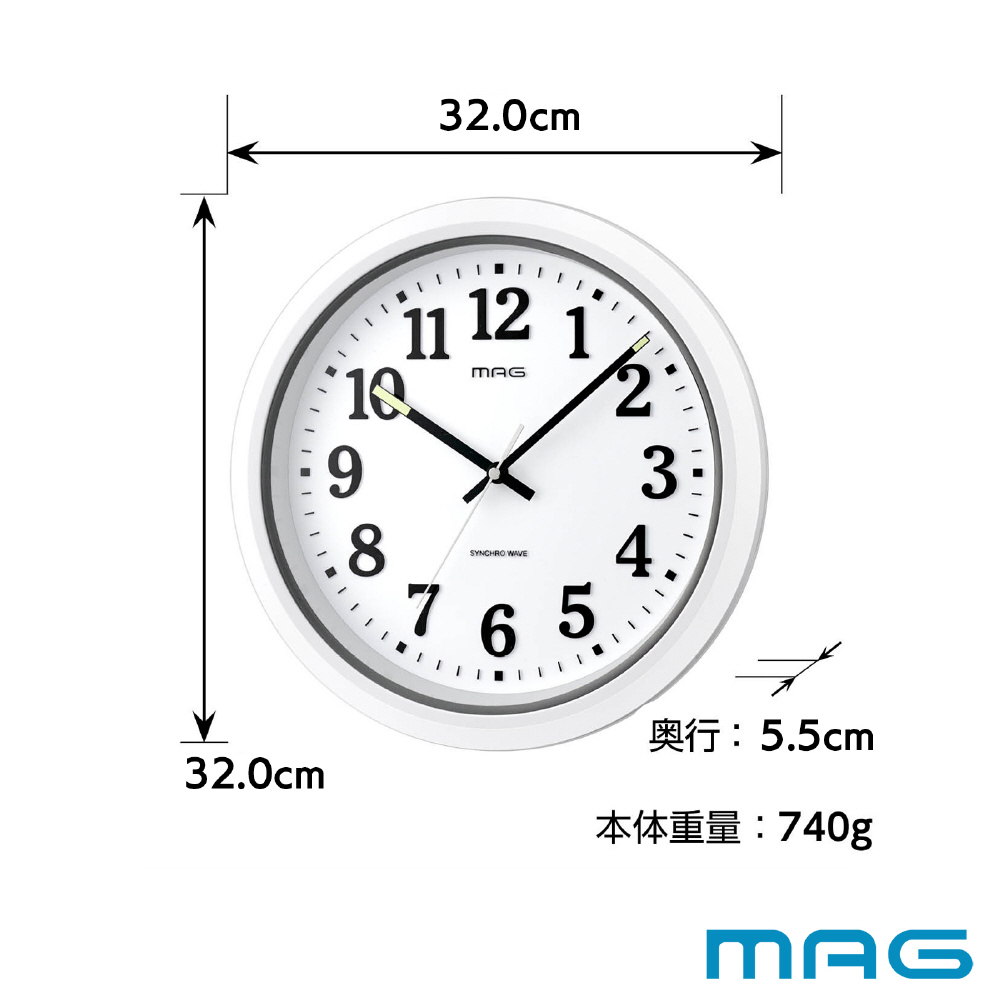 防塵防水 (IP67) の電波掛時計 ナヤ ホワイト W-734 WH-Z [電波自動受信機能有]