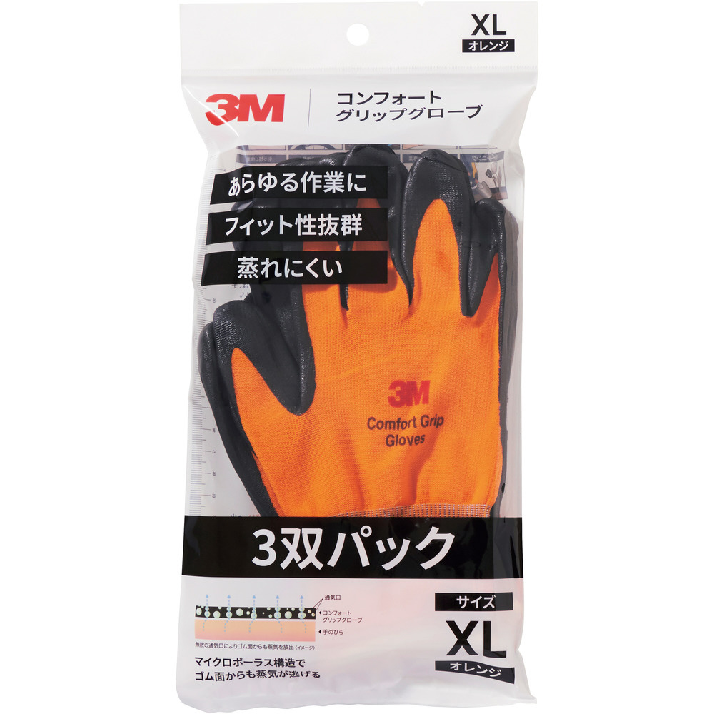 3M コンフォートグリップグローブ オレンジ XLサイズ (3双パック) GLOVEORAXL3P